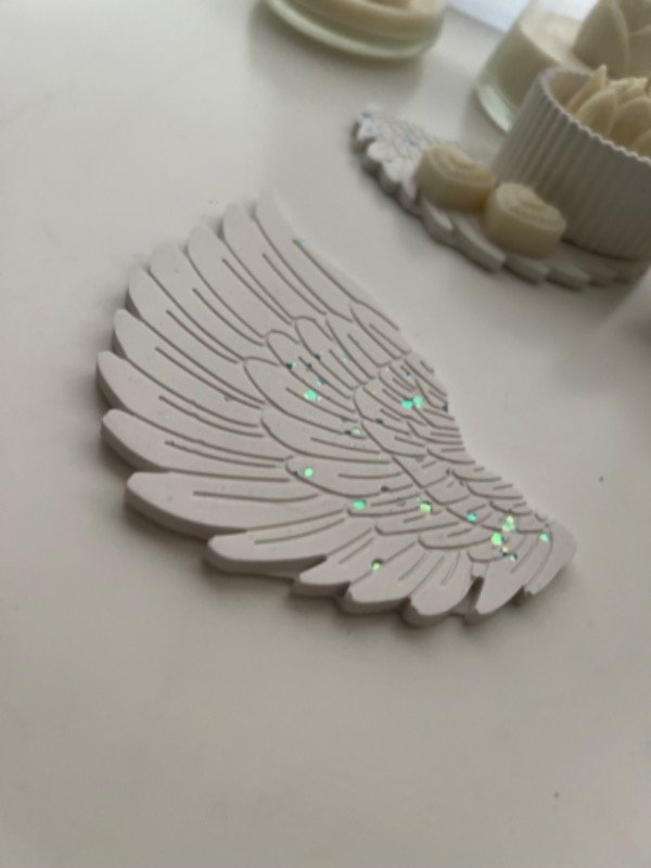 Bandeja blanca de Yeso, Alas de ángel, con decoración de brillos a elección